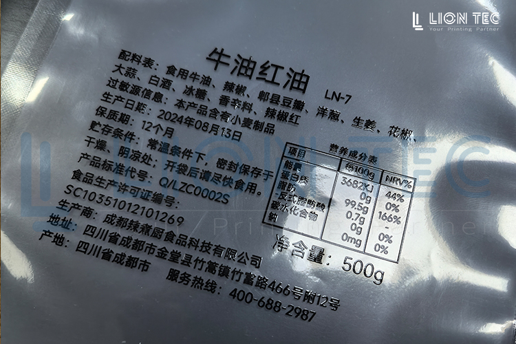 火鍋底料配料表UV噴碼機(jī)-打樣效果