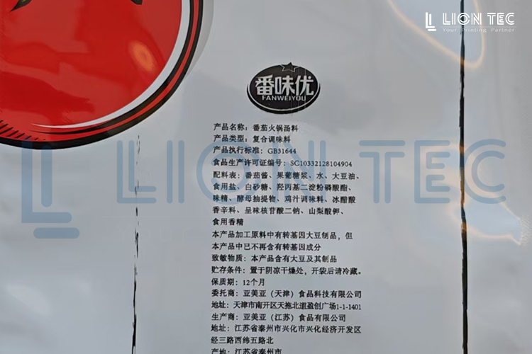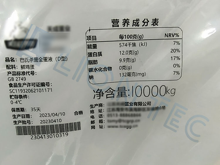 藍(lán)茵UV噴碼機(jī)可實(shí)現(xiàn)在食品塑料pe膜包裝袋上噴印營養(yǎng)成份表、logo、產(chǎn)品信息、廠家信息,等寬幅大幅面內(nèi)容,實(shí)現(xiàn)高清晰、高附著噴印效果