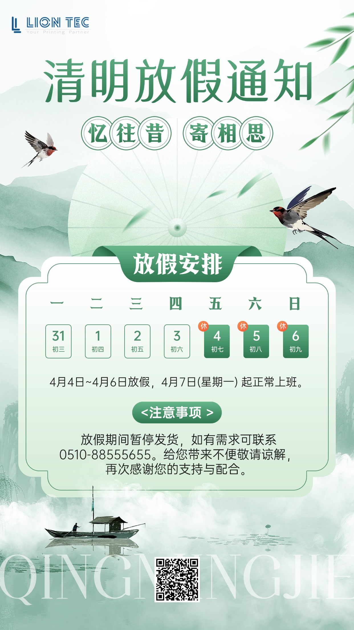 人間四月芳菲盡,春風(fēng)落日寄哀思。清明,是慎終追遠(yuǎn)的時(shí)節(jié),是對(duì)親人的思念,更是文化的傳承。清明節(jié)即將到來,根據(jù)國(guó)家法定節(jié)假日規(guī)定,噴碼機(jī)廠家藍(lán)茵現(xiàn)將 2025 年清明節(jié)放假安排通知如下: