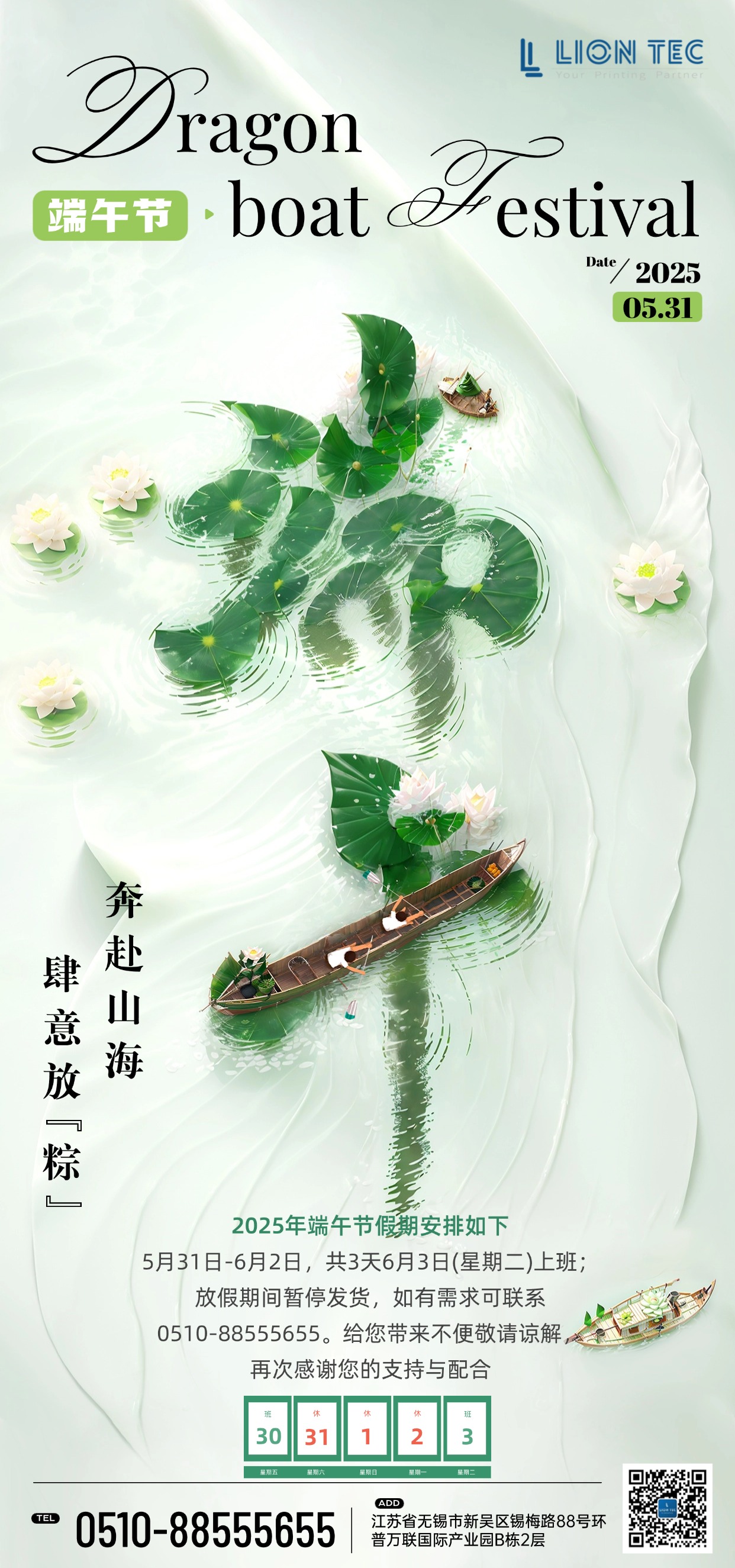 花開半夏,雨落成詩,端午已至,祝君安康!五月初五端午節(jié)即將到來,根據(jù)國(guó)家法定節(jié)假日固定,噴碼機(jī)廠家-藍(lán)茵現(xiàn)將2025年端午節(jié)放假安排通知如下:
