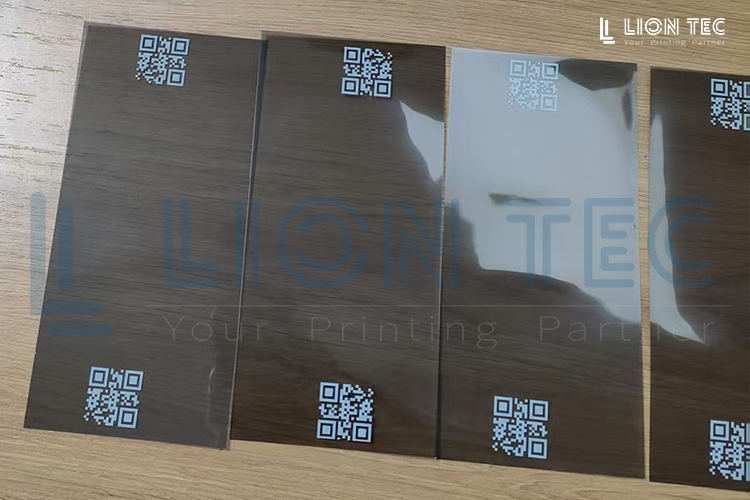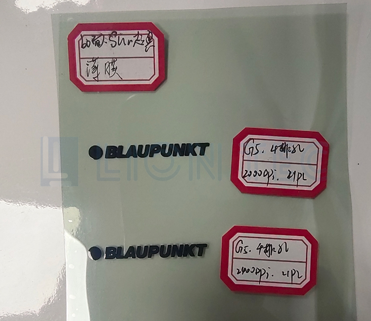 某上市公司車企的聚丙烯(PP)材質(zhì)樣品汽車顯示屏膜通過藍茵uv噴碼機打樣的效果