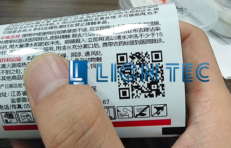 UV噴碼機的壓電式噴墨與LED光固化技術(shù)很適合在這種?特殊的薄膜材料上進行高附著、高清晰的打印,以上是我們?yōu)榭蛻羲蜆拥男Ч麍D。小尺寸的二維碼在UV噴碼機的打印下同樣可以清晰、易識別。