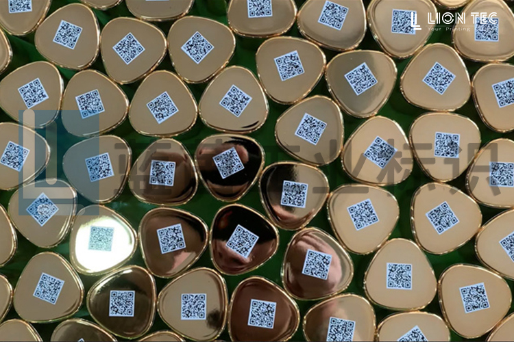 UV噴碼機在酒瓶蓋上噴印白底黑色二維碼