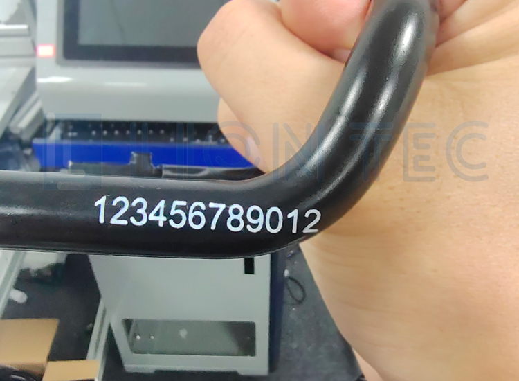 轉(zhuǎn)向管表面具有較低的附著力和特殊的光滑性傳統(tǒng)噴印方法往往難以實(shí)現(xiàn)長(zhǎng)久清晰的標(biāo)識(shí)采用自研發(fā)高附著力白色墨水,確保持久清晰通過(guò) 耐高溫 耐油污 耐磨損測(cè)試通過(guò)高分辨率的噴頭控制無(wú)論是復(fù)雜的批次號(hào)、生產(chǎn)日期還是品牌標(biāo)識(shí),都能完美呈